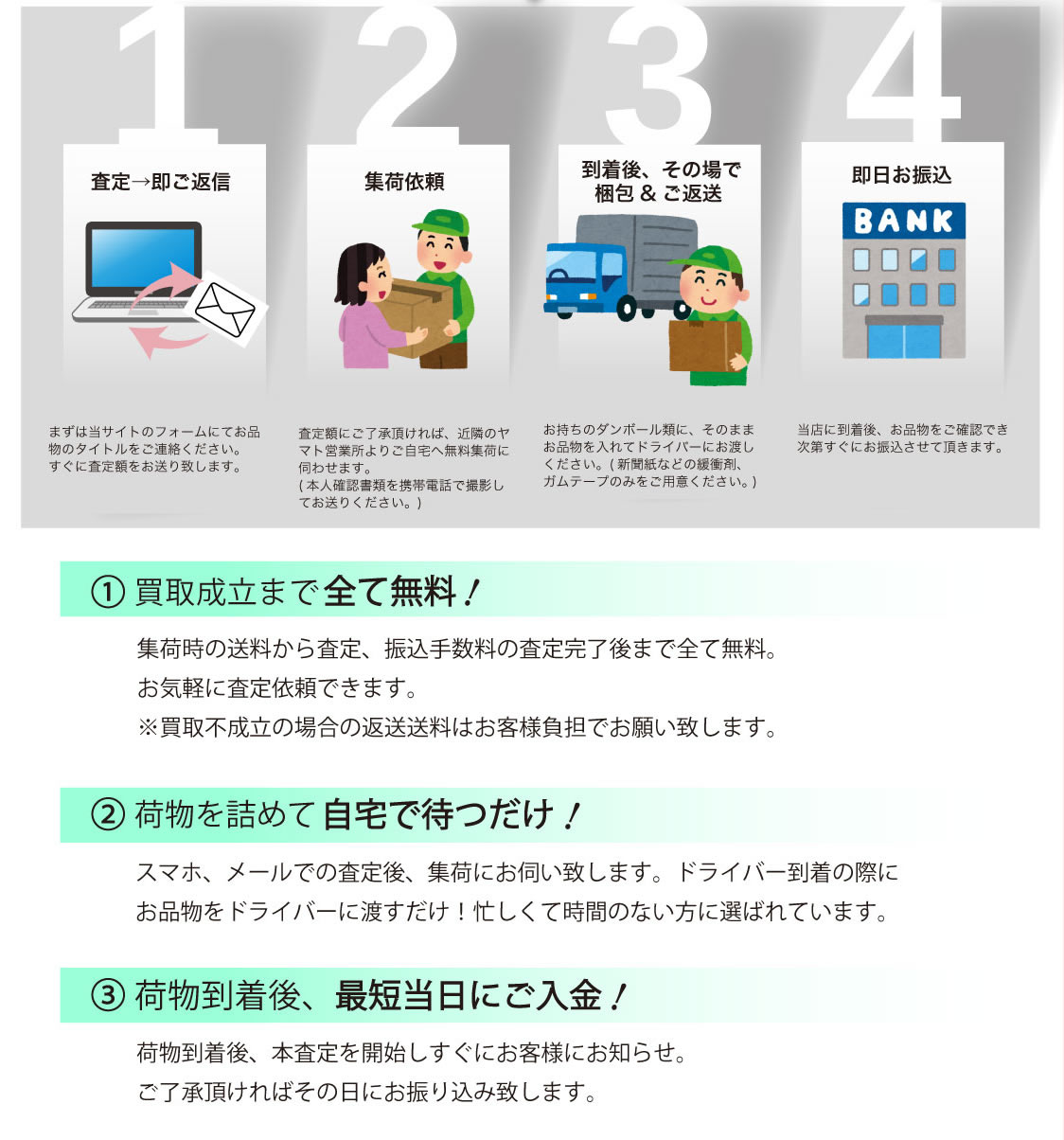買取成立までにかかる送料等は当社がすべて負担いたします。