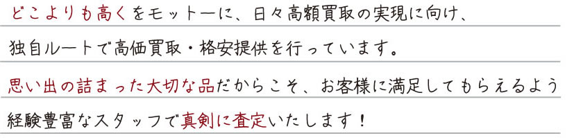 ※時期により、買取値段は表示内容と大きく変わることがございます。